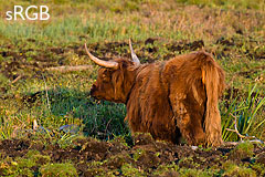 Dieses Bild hat vertauschte Farbkanäle in der Reihenfolge RBG; das eingebettete ICC-Profil ändert die Reihenfolge auf RGB und das WCS-Profil auf GBR. Dadurch wird das Fell des Hochlandrindes ohne Farbmanagement rötlich-pink dargestellt, mit ICC-Farbmanagement rotbraun und vom Windows Color System (ab Windows Vista) blauviolett – allerdings nicht im Internet Explorer 7; diese Version scheint alle Bilder unabhängig vom eingebetteten Profil als sRGB zu interpretieren, ein sehr eigenwilliges Vorgehen, das Microsoft inzwischen geändert hat: Im Internet Explorer 9 unter Windows 7 arbeitet das Farbmanagement nun wie erwartet und wendet in Bildern eingebettete ICC- und WCS-Profile an.